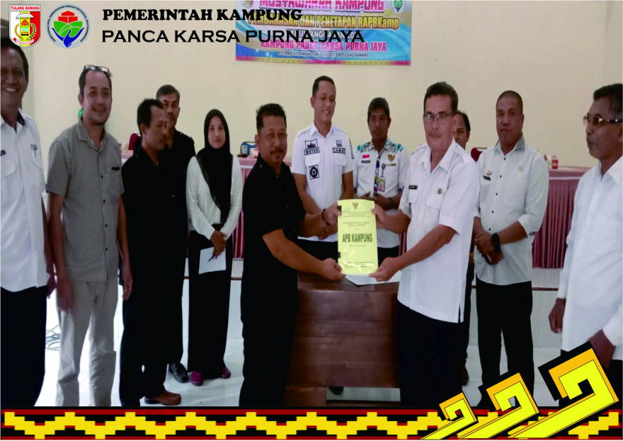 Selanjutnya Kesepakatan-kesepakatan yang telah disepakati dalam musyawarah Kampung kali ini dituangkan dalam Berita Acara Musyawarah penetapan RAPBKam 2025 yang ditandatangani bersama oleh Kepala Kampung Panca Karsa Purna Jaya dan Badan Permusyawatan Kampung (BPK).