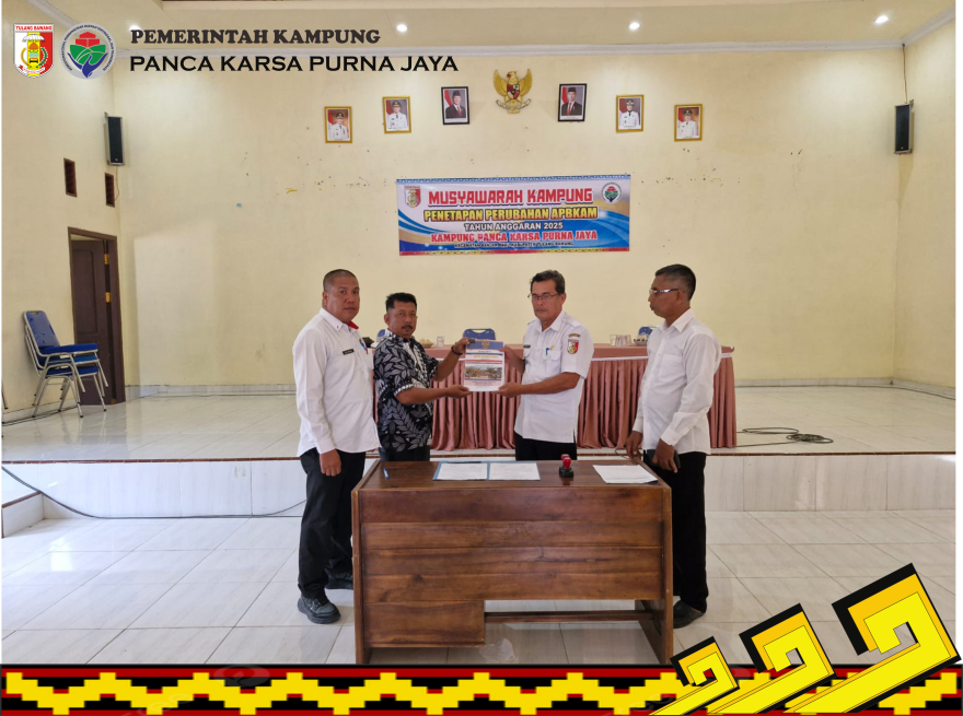 PANCA KARSA PURNA JAYA, - Setelah dilakukan musyawarah Rancangan Perubahan APBKam Panca Karsa Purna Jaya Tahun Anggaran 2025 , pada Hari Rabu, 18Juni 2025 akhirnya Kampung Panca Karsa Purna Jaya Kecamatan Banjar Baru bisa melakukan Musyawarah Kampung kembali dalam rangka Penetapan Perubahan APBKAM TA.2025.